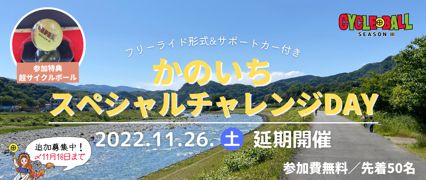 ※お問合せの際は「11/26開催 サイクルボール かのいち ~スペシャルチャレンジDAY~」とお伝えいただくとスムーズです。